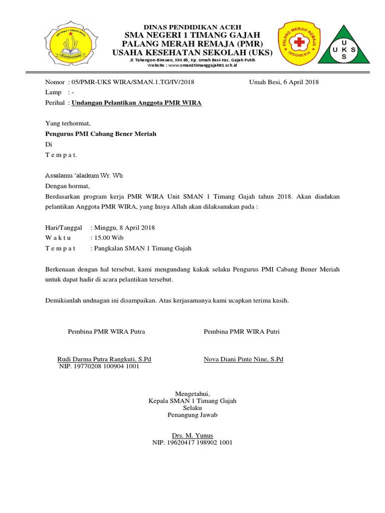 Ada dua jenis surat undangan yaitu surat undangan tidak resmi dan resmi. Pimpinan daerah ikatan mahasiswa nahdlatul ulama sekretariat : Surat undangan adalah surat yang dibuat dengan tujuan mengajak seseorang atau pihak lain untuk menghadiri sebuah acara tertentu. Ada berbagai contoh surat undangan dengan berbagai jenis kegiatan seperti surat undangan rapat, pernikahan, reuni, dan sebagainya. Sehubungan akan diadakannya pelantikan pengurus komisariat himpunan mahasiswa islam (hmi) kom. Dari kedua jenis surat ini mempunyai tujuan tersendiri dan tidak dapat digunakan di sembarang tempat. Pembaca yang budiman, paskibra kita tahu mempunyai tugas utama mengibarkan bendera merah putih pada peringatan proklamasi. Misalnya saja melalui panggilan telepon ataupun chatting. Dinas pendidikan kebudayaan pemuda dan olah raga. Download contoh surat lamaran kerja, perjanjian, undangan tahlil, surat cinta, curriculum vitae (cv), yang lengkap, singkat, baik dan benar, doc word dapat anda download. Tapi yang akan kita bahas kali ini tentang surat undangan pengajian. Pada kesempatan kali ini saya akan membahas contoh surat undangan kegiatan pelantikan paskibra. Hal yang membedakan karena keduanya memiliki struktur yang berbeda dan untuk keperluan yang tidak.