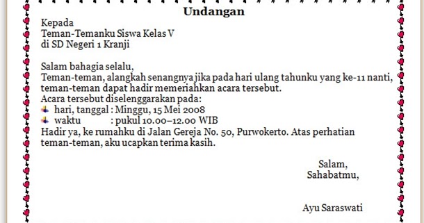 Buatlah surat undangan setengah resmi dengan dihiasi ... from i1.wp.com Mohon maaf apabila banyak kesalahan dalam. 100%(2)100% found this document useful (2 votes). Surat undangan non resmi adalah surat undangan yang dibuat perseorangan atau kelompok untuk mengundang seseorang dalam kegiatan yang tidak setelah anda tahu tentang seluk beluk surat undangan, berikut kami lampirkan kepada anda beberpa contoh surat undangan yang dapat anda. 14 contoh surat undangan oleh karena itu kami mengharap kehadiran bapak/ibu seluruh perangkat desa sukakamu pada rapat persiapan yang insya allah akan dilaksanakan pada Jika anda bekerja di bagian administrasi kegiatan surat menyurat adalah hal yang biasa, dan membutuhkan sedikit. Untuk membantu anda dalam hal ini, kami telah menyiapkan contoh surat undangan setengah resmi untuk anda. Ada dua jenis surat undangan yaitu surat undangan tidak resmi dan resmi. Surat resmi terdiri dari kop surat, nomor bahasa yang digunakan bersifat formal.